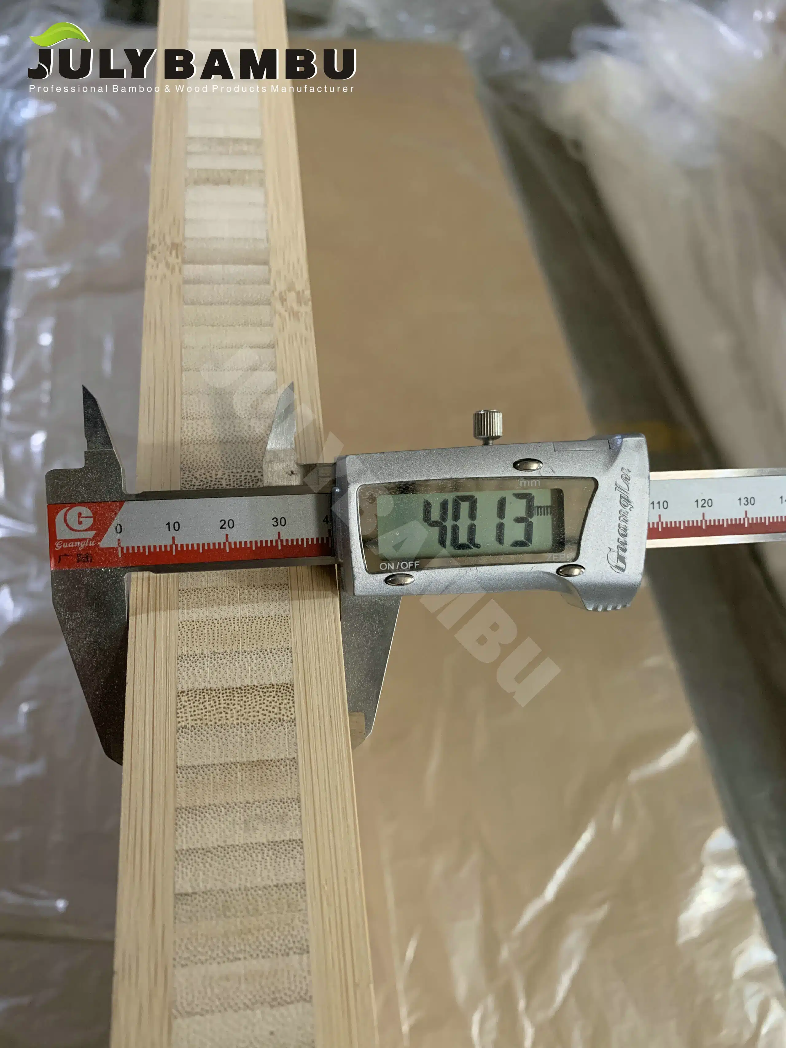 40 mm 炭化垂直 3 層竹パネル、JULYBAMBU が製造する最大厚さは 100 mm で、家具製造業界で使用される標準の厚さは、1/16 インチ、1/8 インチ、3/16 インチ、1/4 インチ、1/2 インチ、3/4 インチ、1 インチ、1 1/2 インチです (通常の mm 単位のサイズは、1.5 mm、2 mm、3 mm、4 mm、5 mm、6 mm、9 mm、10 mm、12 mm、15 mm、18 mm、19 mm、20 mm、30 mm、40 mm です)。